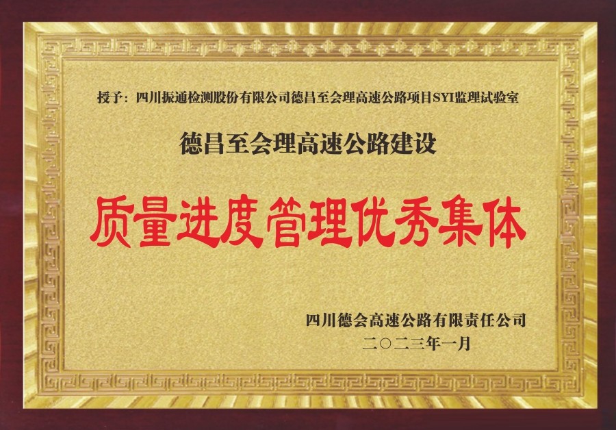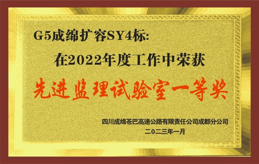 其中,四川太阳集团tyc33455德会高速项目SY1监理试验室获得“质量进度管理优秀集体”;沿江高速项目XJ-SY2监理试验室在沿江高速2022年度综合检查考核评比中获得“优秀试验检测机构”、在2022年劳动竞赛活动考核评比中获得“一等奖”;成绵扩容项目SY4监理试验室在2022年度建设工作暨奋战120天专项行动考核获得“一等奖”。同时,雅叶高速康定过境段项目SY1监理试验室伏正军、德会高速项目SY1监理试验室曾永康等个人获得优秀试验室负责人、先进个人等荣誉表彰。